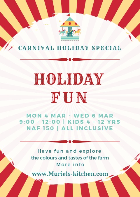 The holiday kids activities are from Monday 4th March to Wednesday 6 March, mornings from 9:00 – 12:00. These activities are suitable for kids aged 4 – 12 years. Costs are Naf150,- terms and conditions apply.